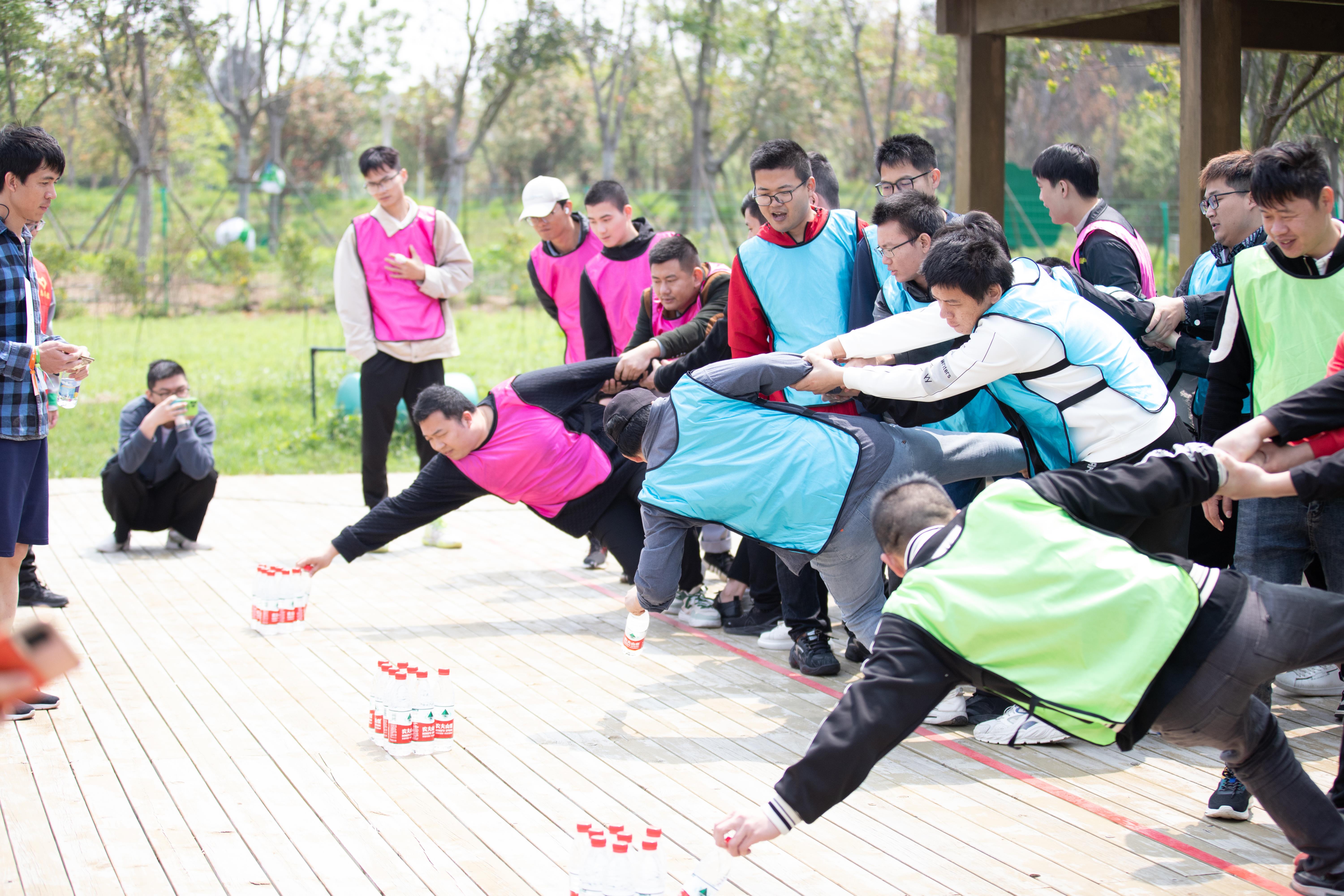 緊接著是考驗速度、提升力量的團隊大比拼:急速60秒、躲避大擺錘、蛟龍取水、一圈到底...